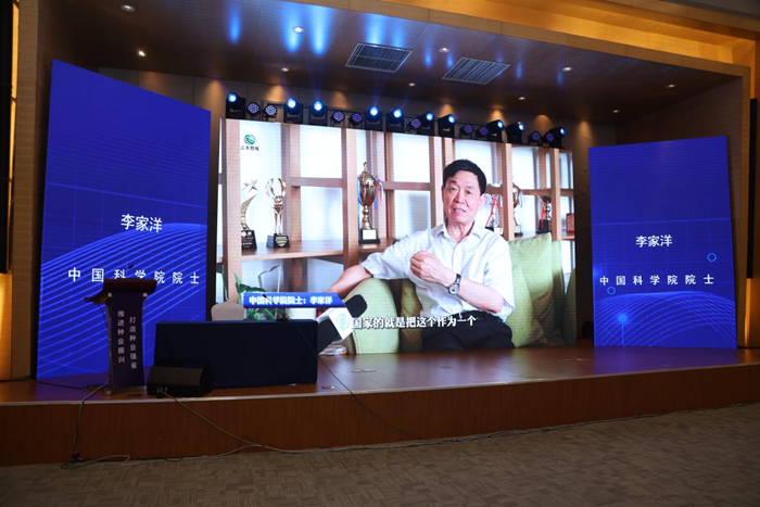 18日上午,种子产业链高峰论坛会现场座无虚席,大家共探新时期种业高质量发展新路径。安徽省农业农村厅副厅长王红致欢迎词,中国种子协会副会长兼秘书长蒋协新出席会议并讲话。中国科学院院士李家洋(视频)、中国科学院院士韩斌、全国农技推广服务中心副主任刘信、安徽农业大学常务副校长马传喜、全国农技推广服务中心区试处处长王玉玺、全国农技中心种业监测处处长邱军、安徽张海银基金会理事长张海银、安徽农业大学教授胡承霖、安徽省农业农村厅种业管理处处长胡涛、安徽省种子管理总站站长熊成国等众多顶级专家领导参加论坛会,农业农村部科技发展中心陈红处长、中国农业科学院研究员王天宇、中国社会科学院研究员李菊丹、河南农业大学副院长殷贵鸿、荃银高科和皖垦种业与会分别做了精彩报告。