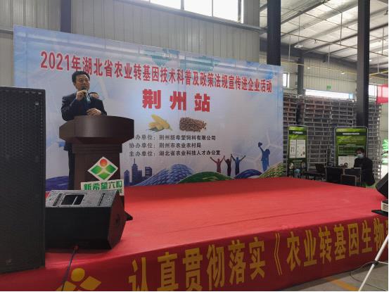 11月3日,农业转基因生物技术科普及政策法规宣传进企业活动,在荆州新希望饲料有限公司成功举办。本次活动由湖北省农业农村厅主办,荆州市农业农村局、荆州新希望饲料有限公司承办。活动以讲座形式开展,参加听讲员工100余人。