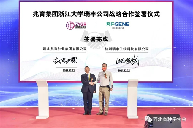 两家本着“优势互补、资源共享、相互促进、共同发展”的原则,赵劲霖首席科学家代表兆育集团与沈志成教授代表浙江大学瑞丰生物签署协议,开启现代生物育种方面全方位、深度战略合作。