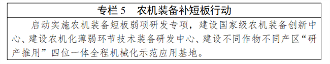 突破核心技术及零部件。加快突破大马力节能高效农用柴油机、水田机械轻量化发动机、液压无级变速器、动力换挡变速箱等核心部件,优化耕种装备入土部件、仿形割台、柔性脱粒滚筒、高速投种装置、高性能打结器、施药机械喷头等关键作业部件性能,研发高效精密播种、低损收获、高效清选、自动调平、残膜回收等关键共性技术。