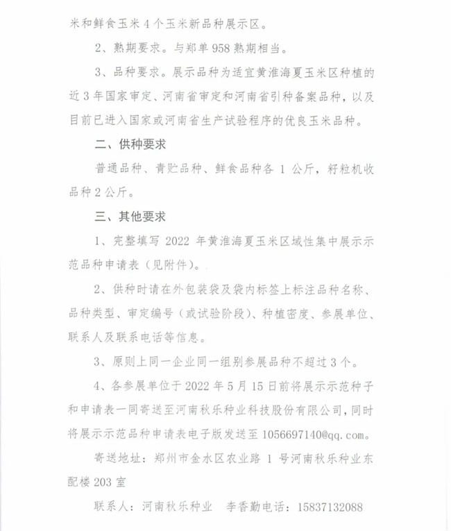 2022年黄淮海夏玉米区区域性集中展示评价品种开始征集啦!