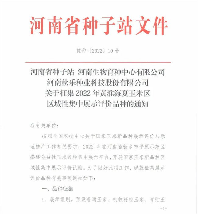 股有限公司联合下发《关于征集2022年黄淮海夏