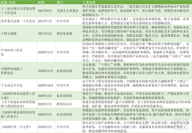 近年我国种业重要政策汇总 资料来源:前瞻产业研究院、35斗