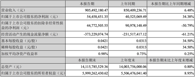 隆平高科(000998)发布2022年第一季度报告,报告期内公司实现营业收入905,492,180.47元,同比增长6.48%;归属于上市公司股东的净利润54,458,451.35元,同比增长34.38%。