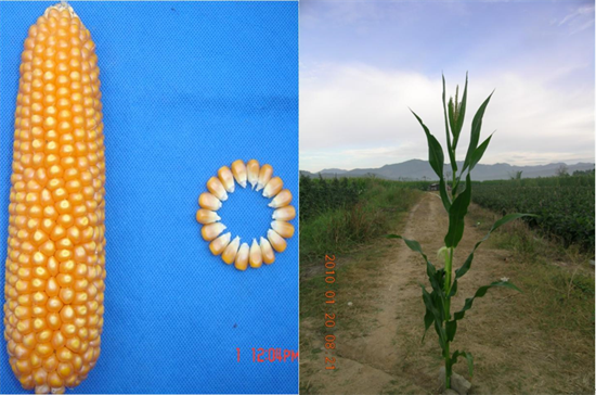 该自交系具明显的热带种质特性。子粒排列整齐、紧密,粒大,桔红色,硬粒或半硬粒,品质极佳。高抗大、小斑病、青枯病、丝黑穗病、纹枯病和病毒病, 根系较发达。
