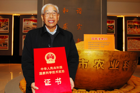 为“全国杰出贡献玉米自交系”选育者代表颁发荣誉奖牌。