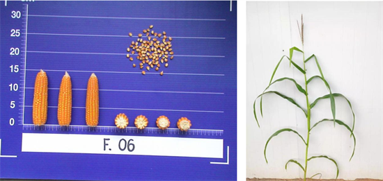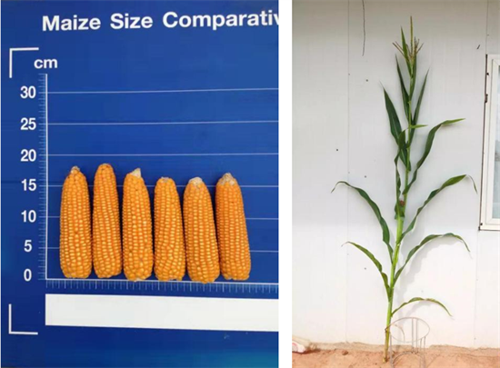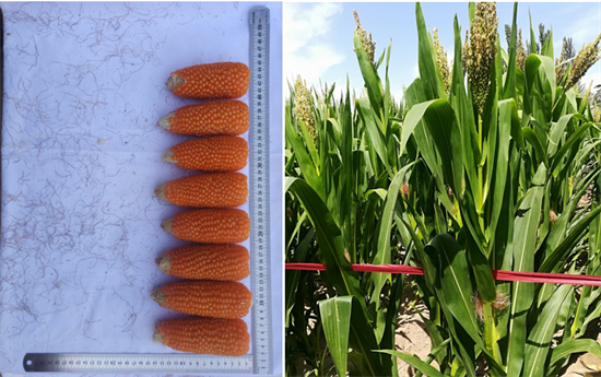 特性:生育期110天,株高165cm 穗位高80cm,果穗筒型,穗长14cm,籽粒橙色,硬粒型,白轴,花丝红色,雄花紫色。
