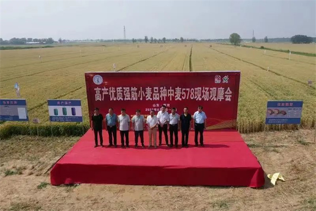 中麦578是中国农业科学院作物科学研究所与棉花研究所合作育成的优质强筋高产品种,已通过国家黄淮南片、黄淮北片两大麦区审定,2022年又通过了新疆初审,推广区域和适应性居国内优质强筋麦前列。该品种的产业化工作已经全面展开,金沙河、益海嘉里、南阳想念、南顺等面业集团对其加工品质均已充分认可,2021年订单收购27万吨,2022年的订单收购正在进行中,预计将显著增加。中麦578的大面积推广应用和订单种植,将为支撑口粮安全、提升小麦产业整体竞争力和增加农民收入做出新贡献。