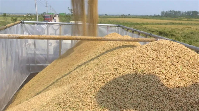 近日,咸宁市嘉鱼县官桥镇两湖村金色的稻田里,4台收割机来回穿梭,对成熟的“巨型稻”进行收割。今年年初,嘉鱼县西凉湖外洲生态农业合作社在两湖村流转4000亩土地,从湖南引进“巨型稻”专用水稻品种,于4月中旬利用无人机进行播种,经过130天左右的精心管理,“巨型稻”试种成功,平均每株水稻植株高达1.8米左右。
