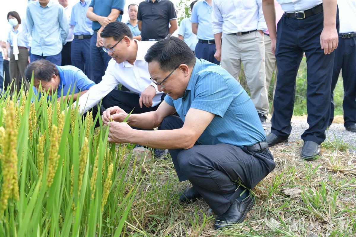 湖北日报讯(记者汪彤、通讯员孔剑、祝师元、马磊)强农业,必先强种业。为贯彻落实种业振兴系列决策部署,加快绿色、优质、高效水稻新品种选育创新与推广应用,8月31日,全省种业创新推进会在仙桃市召开。60余个水稻新品种在仙桃市省级水稻新品种展示示范评价基地集中亮相,吸引各市、州、直管市和部分粮食主产县(市、区)种子管理与推广机构、种业龙头企业、涉种科研院所代表近100人观摩。这些新品种代表了当前我省水稻品种自主创新的最高水平,不但产量高,而且品质优、抗病性好,其推广应用将助推我省粮食生产提质增效。