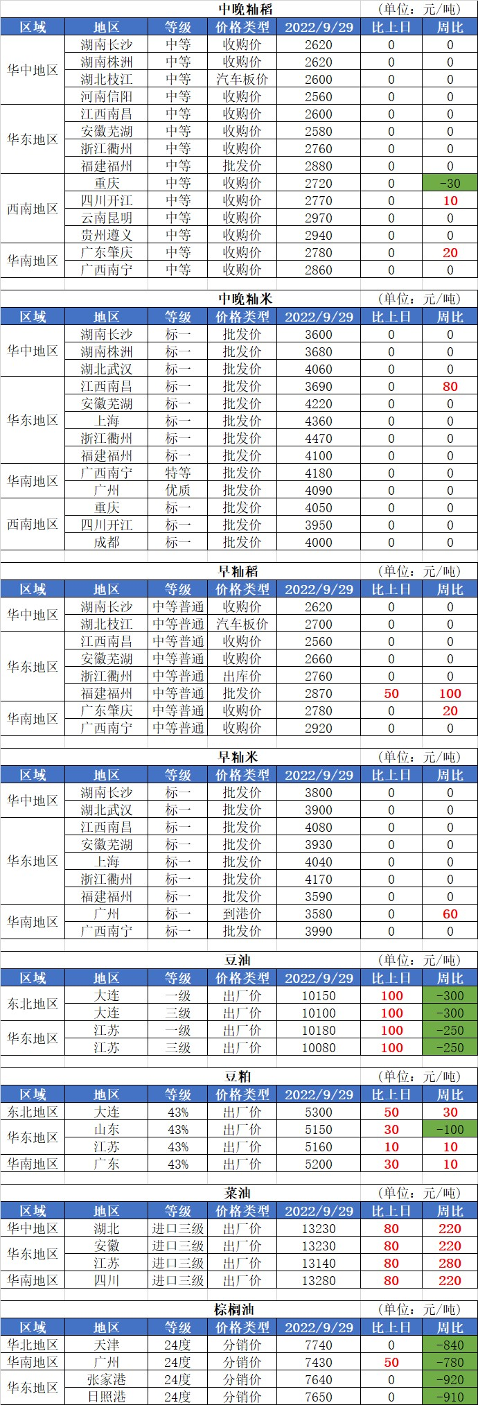 3、截至9月25日,江西省累计收购早稻52亿斤,较上年同期增加5.1亿斤。其中国有粮企收购15.9亿斤,较上年同期减少2.2亿斤。
