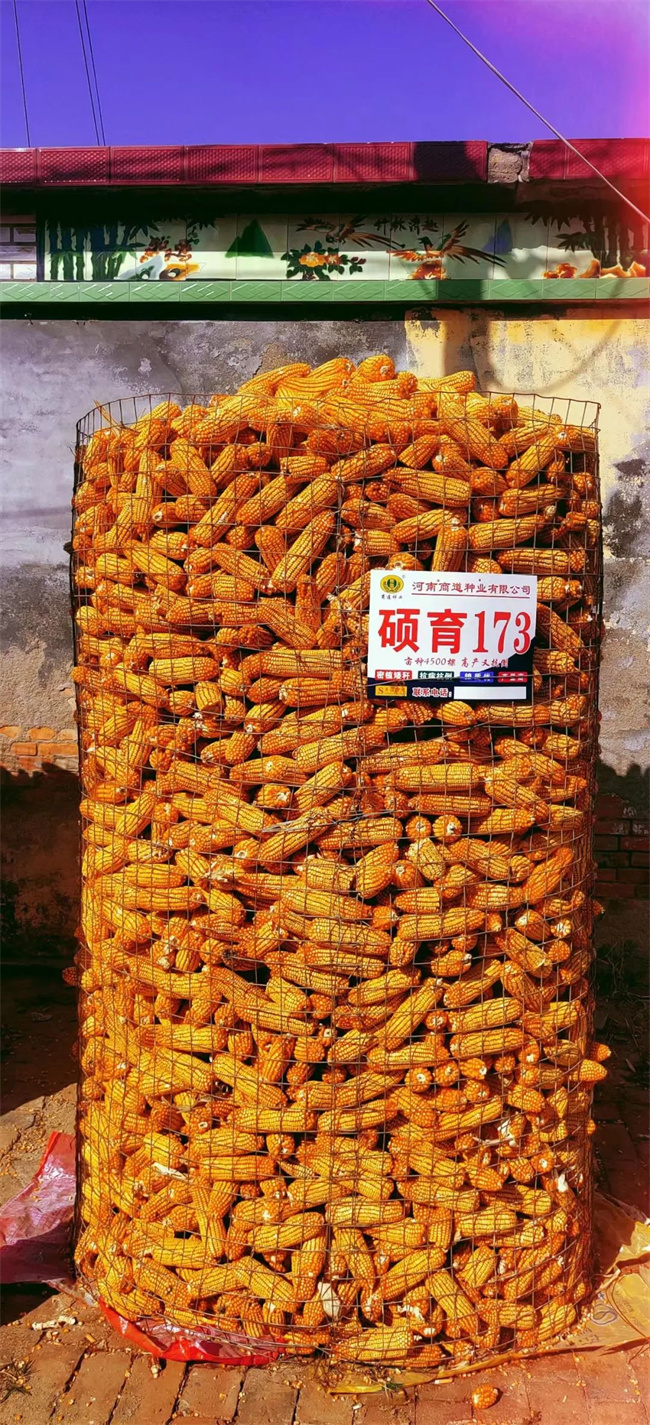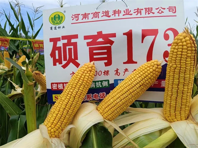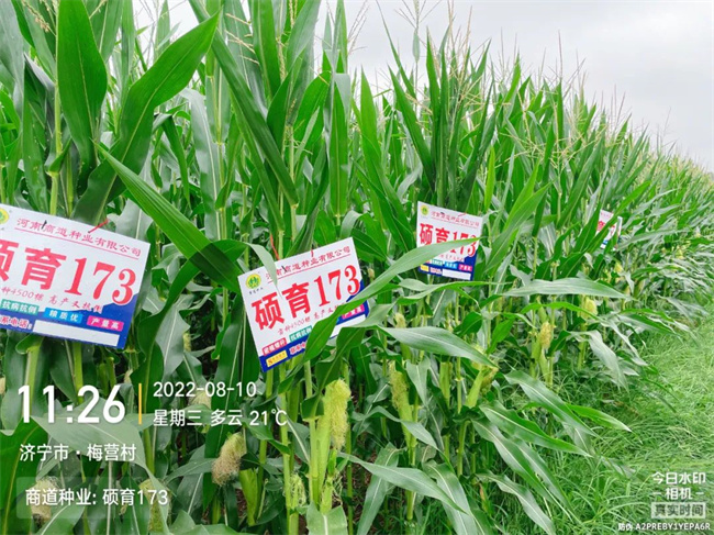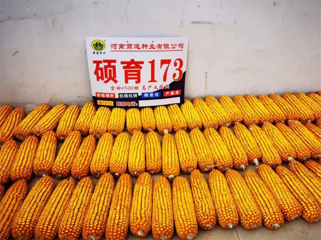 稳产高产。硕育173广适性好,抗灾能力强。多年大田种植,均表现出稳产高产等特点。一般平均亩产1437斤,增产潜力大,2020年最高亩产达2168斤,创当地夏播玉米最高记录,2022年亩产仍然有超过2000斤。