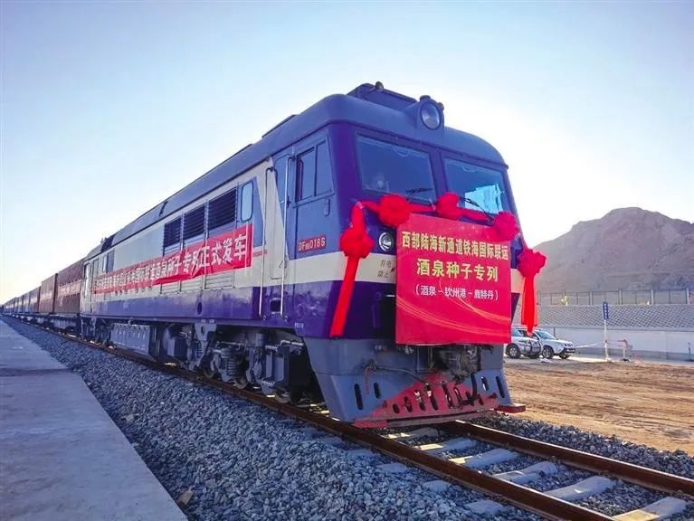 11月17日10时35分,一列载有166吨蔬菜、花卉种子的专列,从中国铁路兰州局金塔铁路货场驶出,经西部陆海新通道,到达广西钦州港后,再转海运至荷兰鹿特丹。