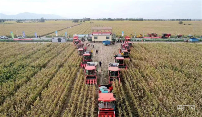 玉米机械化收割(央广网发 甘州区委宣传部 供图)