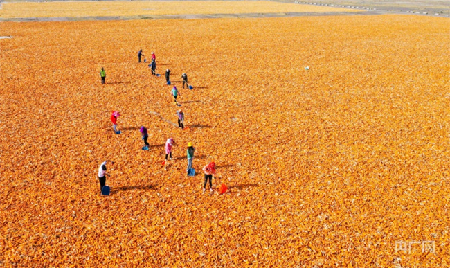 甘州区农户正在晾晒制种玉米(央广网发 王将 摄)