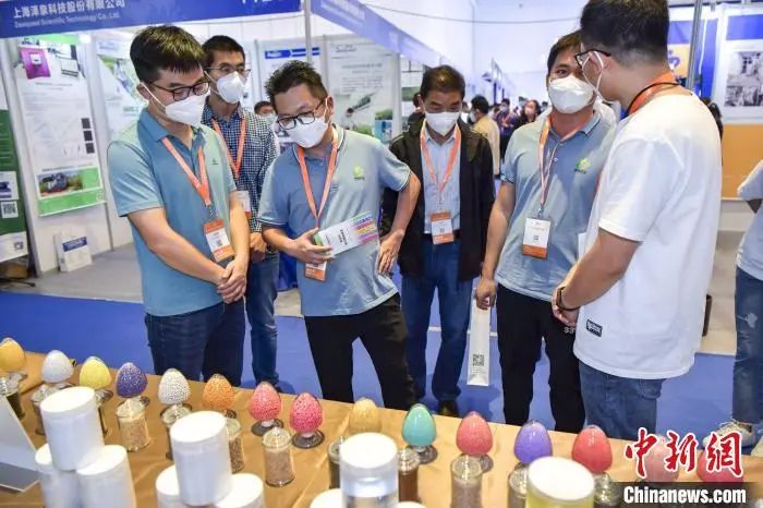 1月5日,第二届三亚国际种业科学家大会在三亚举行。图为与会者参观各类良种。