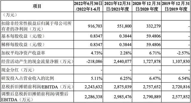 2020年、2021年和2022年上半年,先正达扣除非经常性损益后归属于母公司所有者的净利润分别为33.23亿元、55.18亿元和9.17亿元,调整后息税折旧摊销前利润/调整后EBITDA分别为279.09亿元、298.55亿元和228.63亿元。