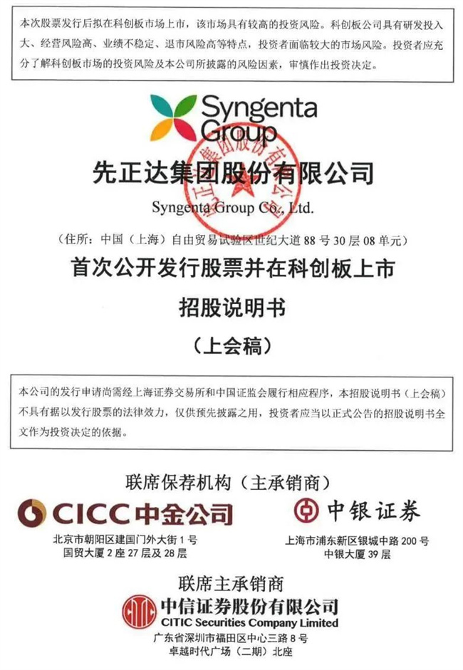 3 月 15 日,先正达集团股份有限公司(以下简称 " 先正达集团 ")披露首次公开发行股票并在科创板上市招股说明书(上会稿)。这意味着,先正达将于近期上会,接受科创板上市委员会的现场审议。