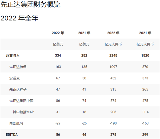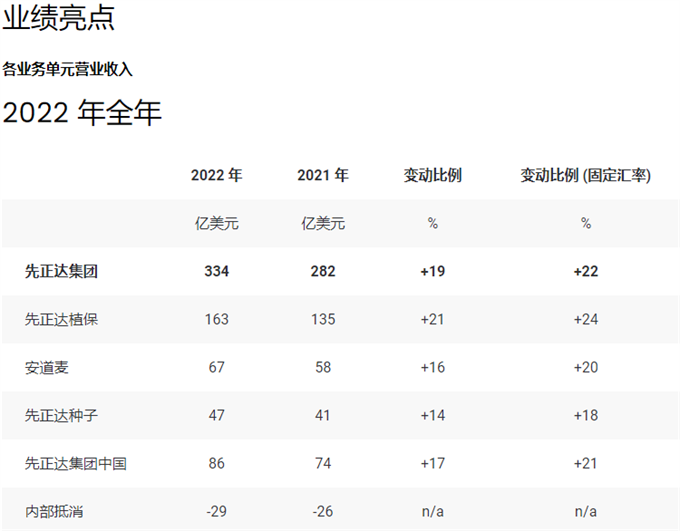 2022年全年,先正达种子营业收入同比增长14%,达47亿美元。