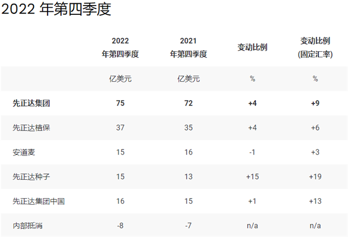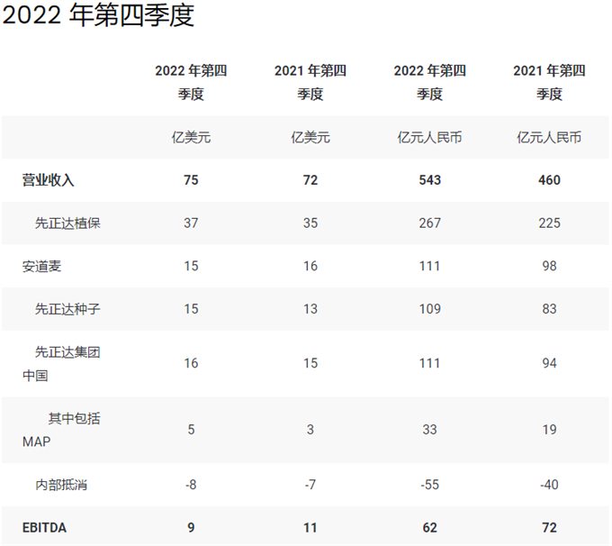 先正达集团今天公布了 2022 年第四季度和全年的财务业绩。