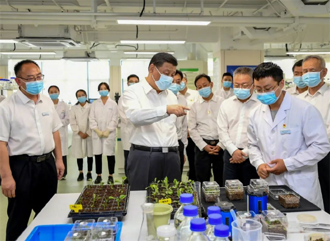 2022年4月,习近平总书记在海南省三亚市崖州湾种子实验室考察调研。图源 央视新闻