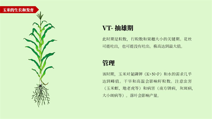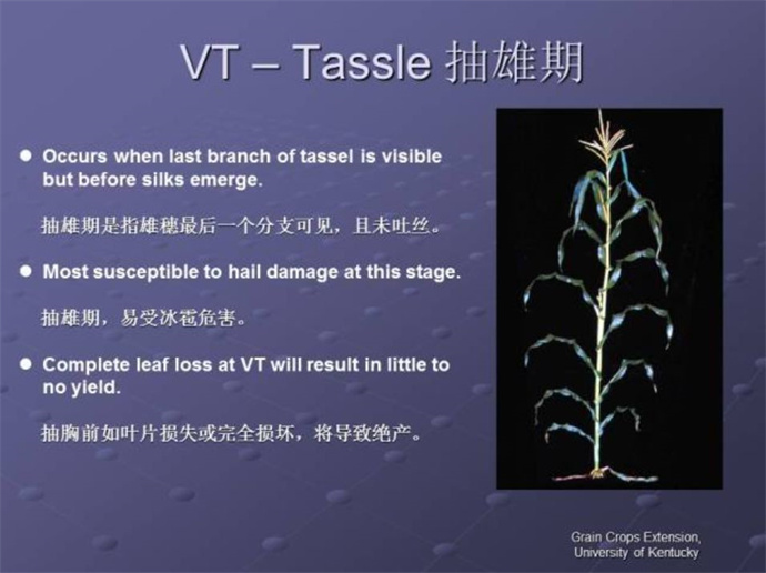 6)VT:吐丝前雄穗的最后一个分枝可见,即玉米的抽雄期。