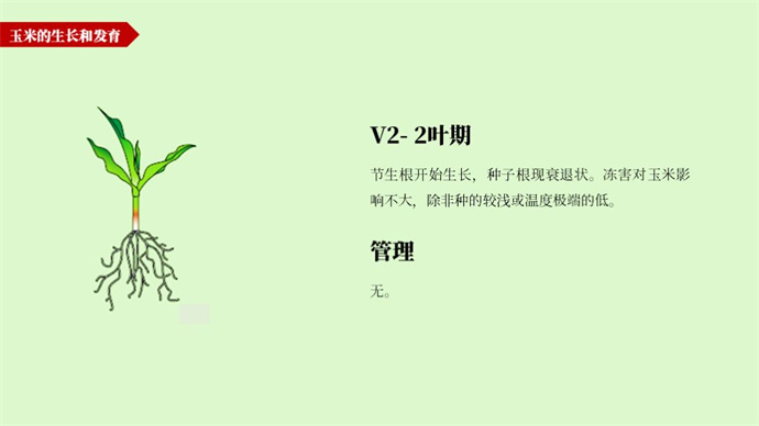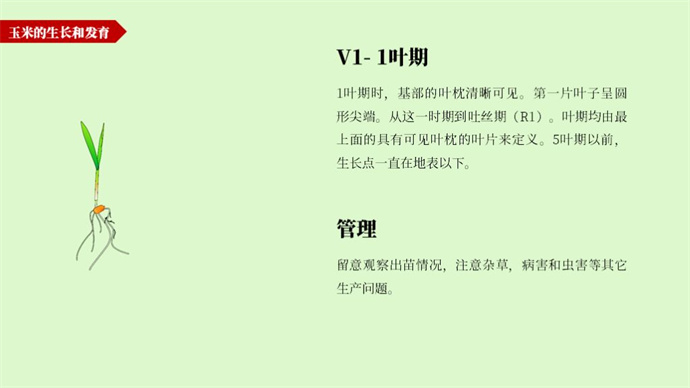 2) V1:第一叶完全展开,即玉米的出苗期。