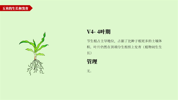 3) V3:第三叶完全展开,此时玉米的生长点仍在地下。