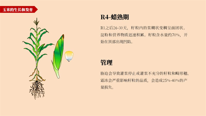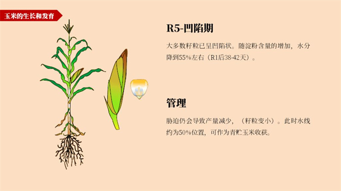 10)R5:籽粒干重接近最大值。即玉米的蜡熟期。