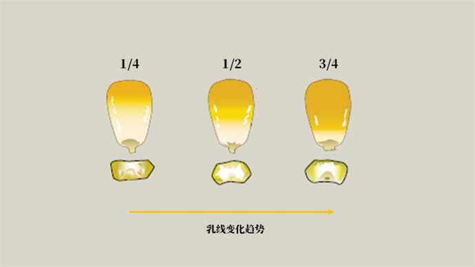 9)R3:玉米籽粒变黄色,胚乳呈乳状后至糊状。即玉米的乳熟期。