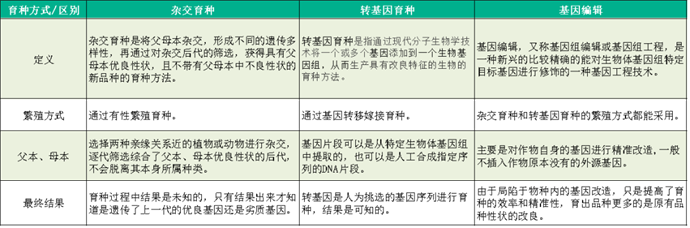 图:杂交育种、转基因育种和基因编辑育种的区别
