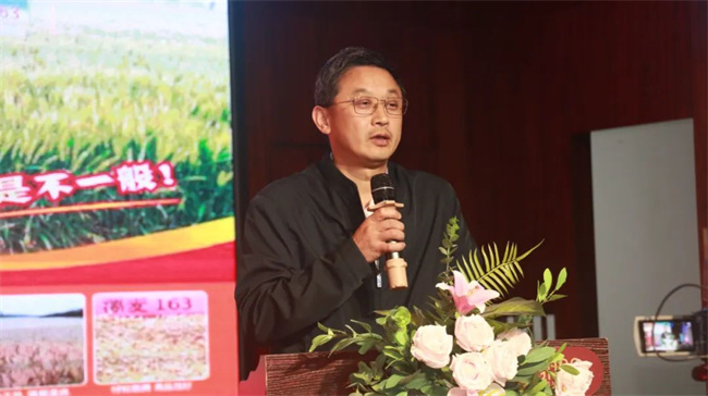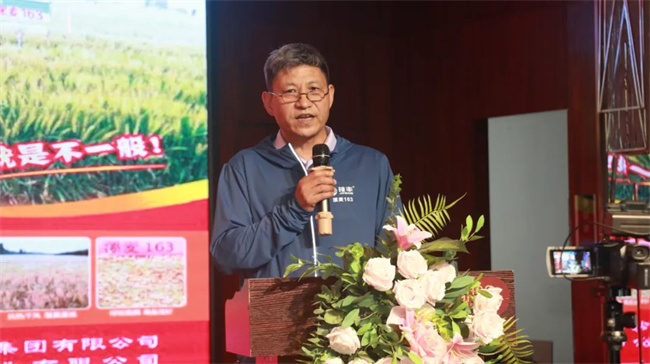 襄阳市农业农村局重大项目组主任俞杰、襄阳市农科院副院长凌冬研究员先后致辞,向与会代表介绍了襄阳粮食生产以及良种推广应用情况。他们表示,技丰种业集团研发实力强,经营理念先进,期待技丰种业有更多的优秀品种在襄阳推广应用,为襄阳粮食安全,农民增收做出更大贡献!