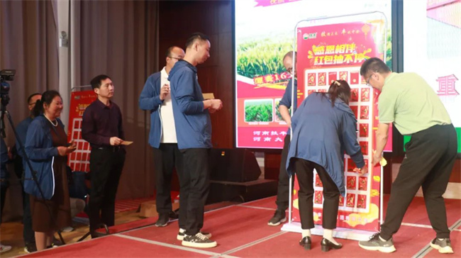 技丰种业集团副总丁明磊宣读了漯麦163市场维权公告,发布了2023年营销政策。在热烈气氛中,会议最后还进行了抽奖乐翻天的签单抽奖活动。