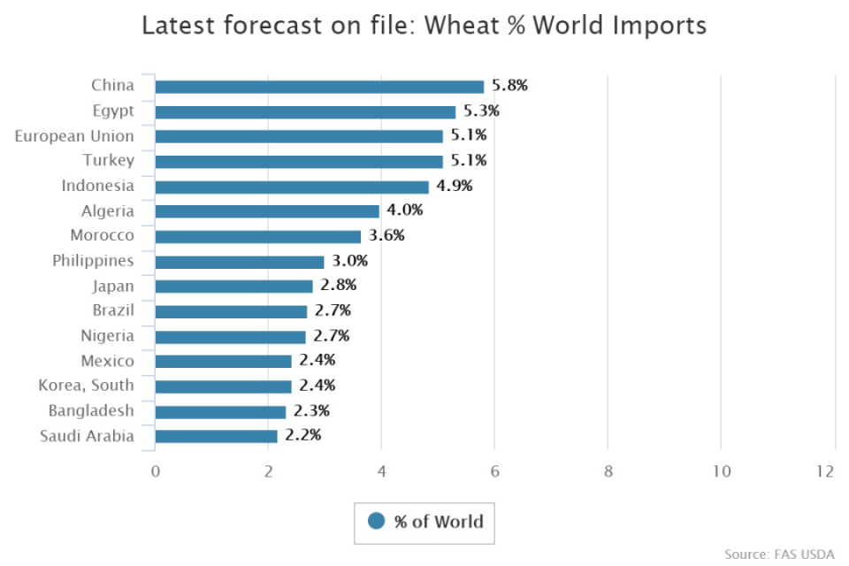 最新预估:全球小麦进口占比