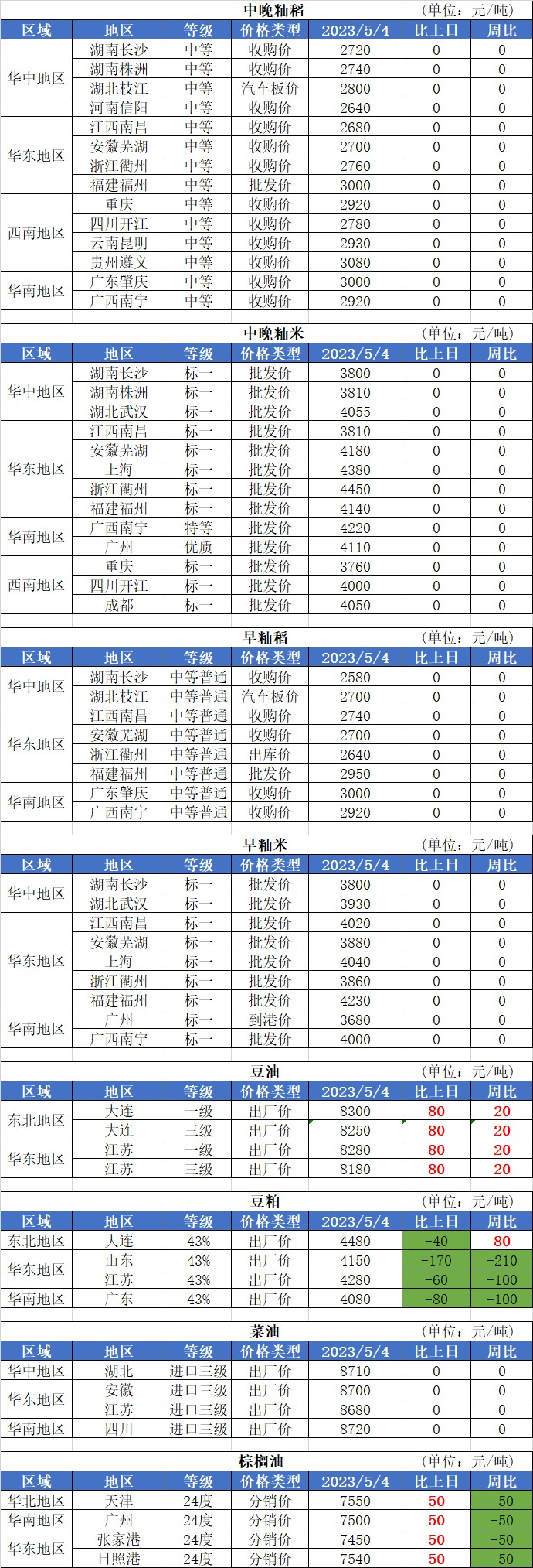 3、5月4日投放政策性稻谷90.32万吨,实际成交7.09万吨,成交率7.85%。其中中晚籼稻成交6.6万吨,均价2516元/吨;粳稻成交0.5万吨,均价2610元/吨;早籼稻无成交。