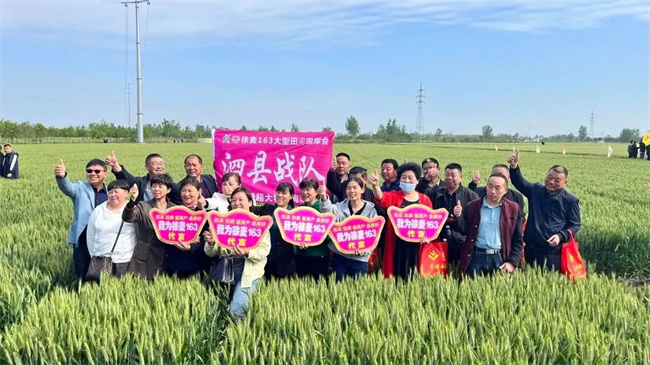 参会代表观摩了徐麦163展示田。观摩田里,通过认真查看目前小麦长势,仔细询问技术人员播期、播量情况,对徐麦163有了进一步了解和认识。在苗期寒旱,4月倒春寒恶劣气候影响下,徐麦163依然表现亮点突出,优势明显,结实性好,与会代表一致给予高度评价和认可。