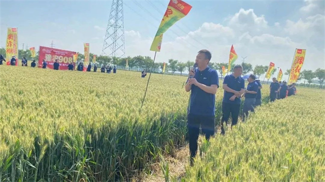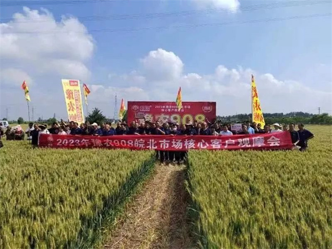 本次观摩会为广大种植户和经销商提供了一次技术交流和学习的机会,同时有效提高了种子经销商和新型农业经营主体对小麦新品种的认识,为筛选出适宜种植的优质、高产、稳产、适应性强的小麦新品种打好坚实基础。经销商代表在交流发言中表示:“通过这次观摩活动,对小麦新品种的性状有了更加深入地了解,豫农908出身名门,大品种,大品牌,卖着放心,种植户安心,可以放心大胆地卖,大胆地种,确实解决了后顾之忧。”