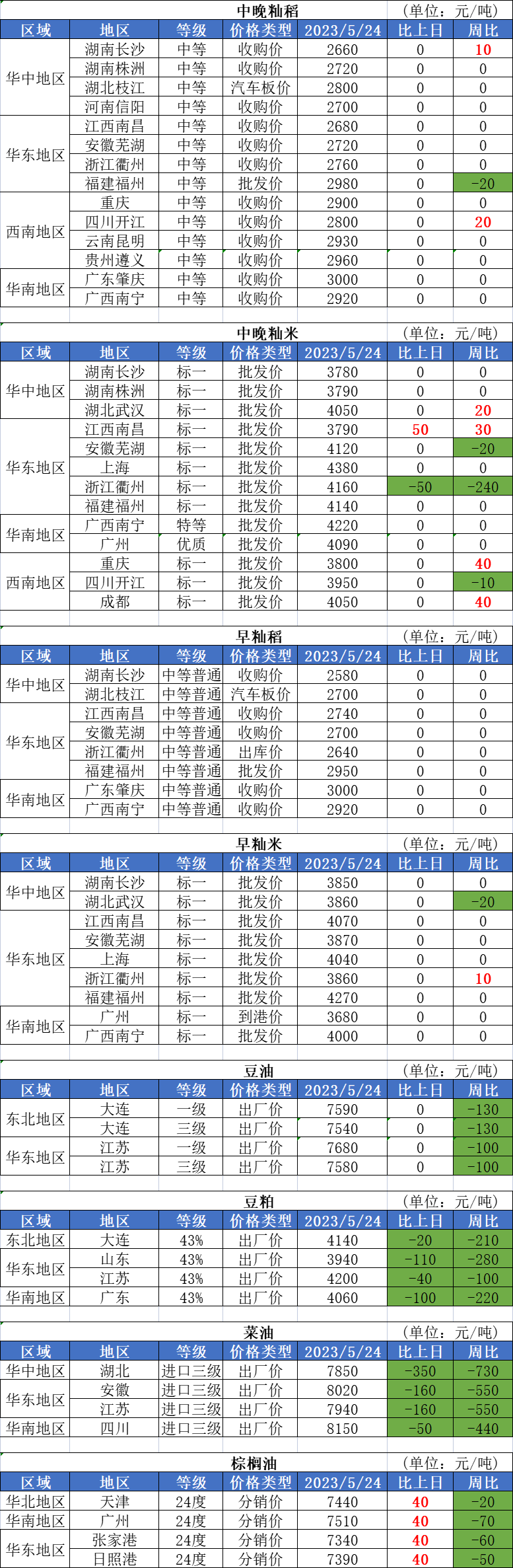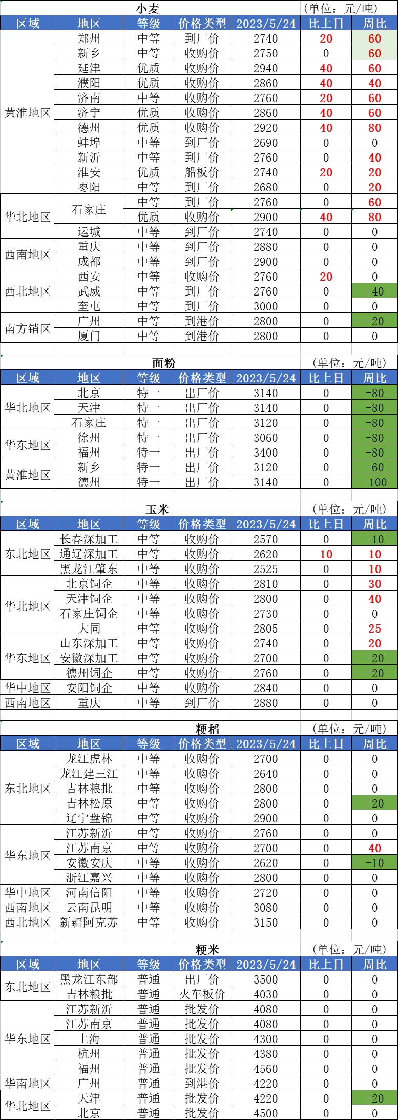 2、5月24日国内玉米价格小幅震荡,其中:华北地区、东北地区与南方销区玉米基本稳定,南北港口玉米价格继续上涨,涨幅10-20元/吨,山东地区玉米价格小幅下跌,跌幅6-12元/吨。