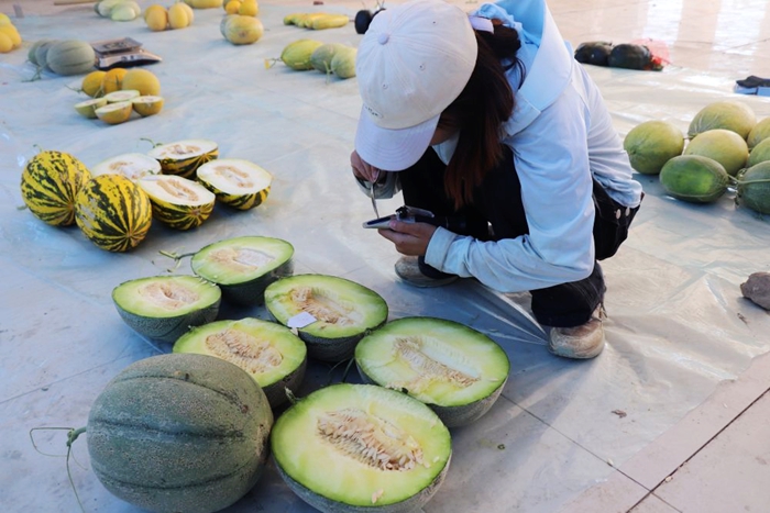 农业农村部组织开展的第三次全国农作物种质资源普查与收集行动正有序推进。国家西瓜甜瓜种质资源中期库(郑州)主要负责西瓜甜瓜资源的编目入库工作。今年,该库在位于新疆的哈密国家农业科技园区的试验地开展普查资源的繁殖更新与数据采集工作,种植来自全国31个省(区、市)汇交的西瓜甜瓜1200余份,其中,甜瓜950份,西瓜320份。 目前,中期库已完成西瓜甜瓜资源田间数据调查、性状核对工作,正在进行果实采收及标准化数据采集,为下一步顺利完成种质资源编目入库做准备。