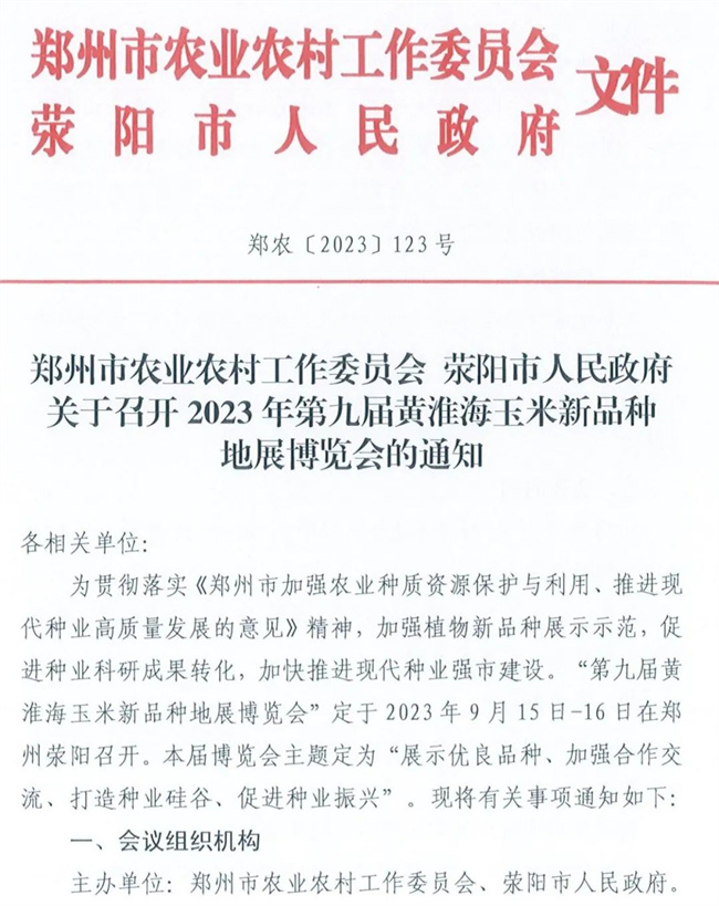 关于召开2023年第九届黄淮海玉米新品种地展博览会的通知