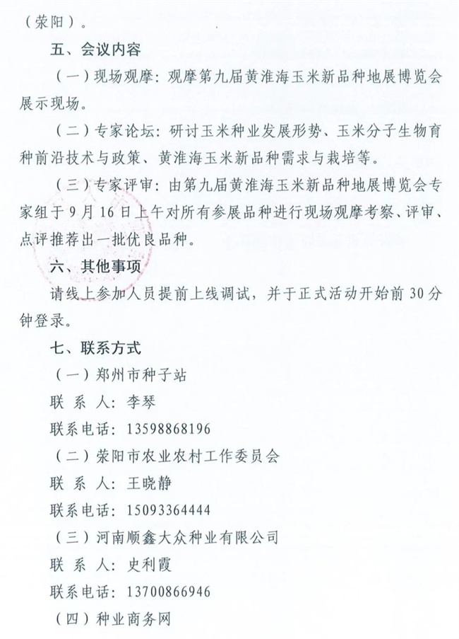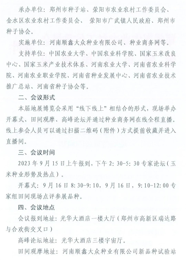 承办单位:郑州市种子站、荥阳市农业农村工作委员会、金水区农业农村工作委员会、 荥阳市广武镇人民政府、郑州市种子协会