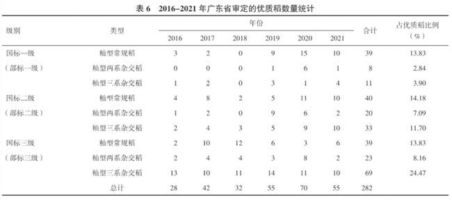 ☞本文来自《广东省2016-2021年审定水稻品种性状与趋势分析》