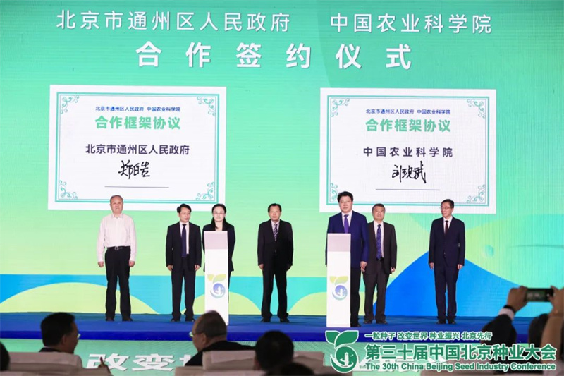 开幕式上,北京市通州区人民政府与中国农业科学院签署《北京市通州区人民政府 中国农业科学院 农业微生物研究中心项目合作框架协议》。