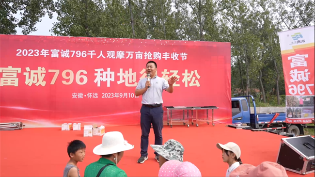 会上,安徽未来种业副总经理苑磊对支持和关爱富诚796的合作经销商表示衷心的感谢,对高度认可和信任的广大种植户表示热烈的欢迎。他表示,富诚796自上市推广以来,稳定、综合优势突出,深受行业专家关注,经销商认可,农民的喜爱。并强调,公司会做好黄淮海市场结构布局,聚焦品种,聚焦市场,加大宣传力度,加强市场管理,强化技术服务,抢建根据地,提高占有率,争取早日实现富诚796事业的“百万千万”财富工程的奋斗目标。