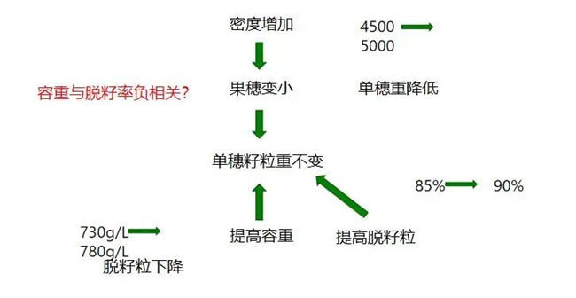 目前选育的品种:容重780g/L以上,脱籽粒90%左右;实现了5000株密度条件下单穗籽粒重与4500株郑单958相同