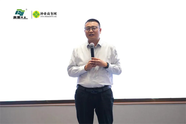 未来种业副总经理苑磊在致词中以《打造黄淮海玉米种业品牌企业》为题做精彩报告。报告围绕玉米品种管理核心,从育种目标、市场导向、品种推广、质量管理体系、风险控制等多个维度解读精细化管理过程,深入地阐述了如何通过深耕种业关键技术,锚定科技发展目标,深挖品种价值,继续提升“未来品牌”在黄淮海知名度。最后,苑总表示,公司期待与全体合作伙伴携手并肩,共同在深耕种业中抢抓新机遇、在务实合作中开启新篇章、在优势互补中创造新辉煌。