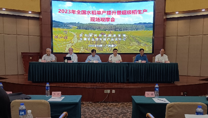 10月27日,受农业农村部科技教育司委托,全国农业技术推广服务中心在广西南宁召开全国水稻单产提升暨超级稻生产现场观摩会。参会代表现场观摩了广西水稻产能提升行动超级稻高产高效技术宾阳示范基地和广西鸿发米业有限公司。
