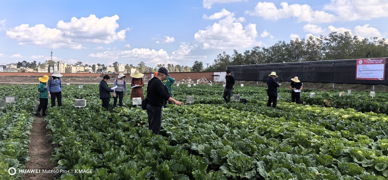 2023年11月7日,云南省种子管理站邀请了省内有关专家在嵩明县品种展示区开展了现场评价。专家组对117个大白菜、22个结球甘蓝品种的抗性、一致性、产量、商品性等重要性状进行田间现场评价。