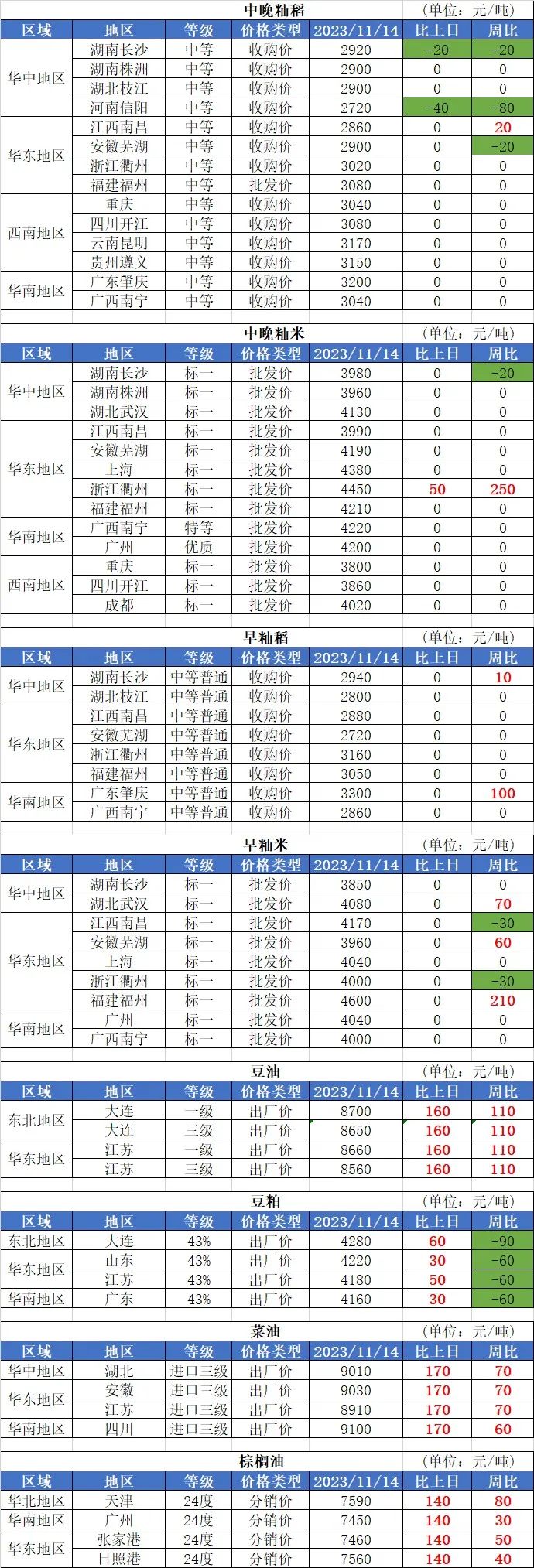 3、截至10月31日,湖北省累计收购稻谷139.95亿斤,较去年同期减少10.1%。其中收购新季中晚籼稻74.4亿斤,较去年同期增加0.35%;收购新季早籼稻2.98亿斤,较去年同期增加21.1%。