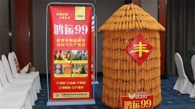 鸿翔双研种业副总经理刘学峰介绍,国审玉米新品种鸿运99,株型紧凑,田间通风透光性好,根系发达,茎秆粗壮韧性好;综合抗性好,特别抗茎腐病和小斑病等方面有优秀的表现;耐密性好,高产稳产,品质优;广适,适宜在黄淮海夏玉米区河南省、山东省、河北省保定市和沧州市南部及其以南地区、陕西省关中灌区、山西省运城市和临汾市、晋城市部分平川地区、江苏和安徽两省淮河以北地区、湖北省襄阳地区种植。最后,刘总对新单61及后续即将上市新品种HA809、YD969等做简要介绍,并宣读了2023-2024年度玉米种子销售政策及六周年感恩回馈政策。